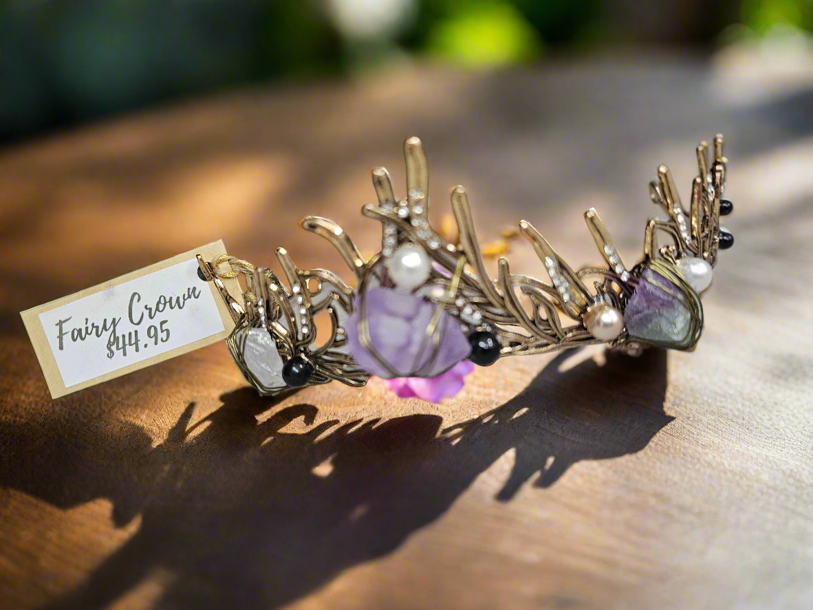 Add a touch of whimsy to your life with this Fairy Crown! This crown is perfect for anyone looking to add a bit of magic to their day. With sparkling crystal details and delicate design, you'll feel like a true fairy princess (or prince) wearing it. Bring some enchantment into your life with our Fairy Crown!
