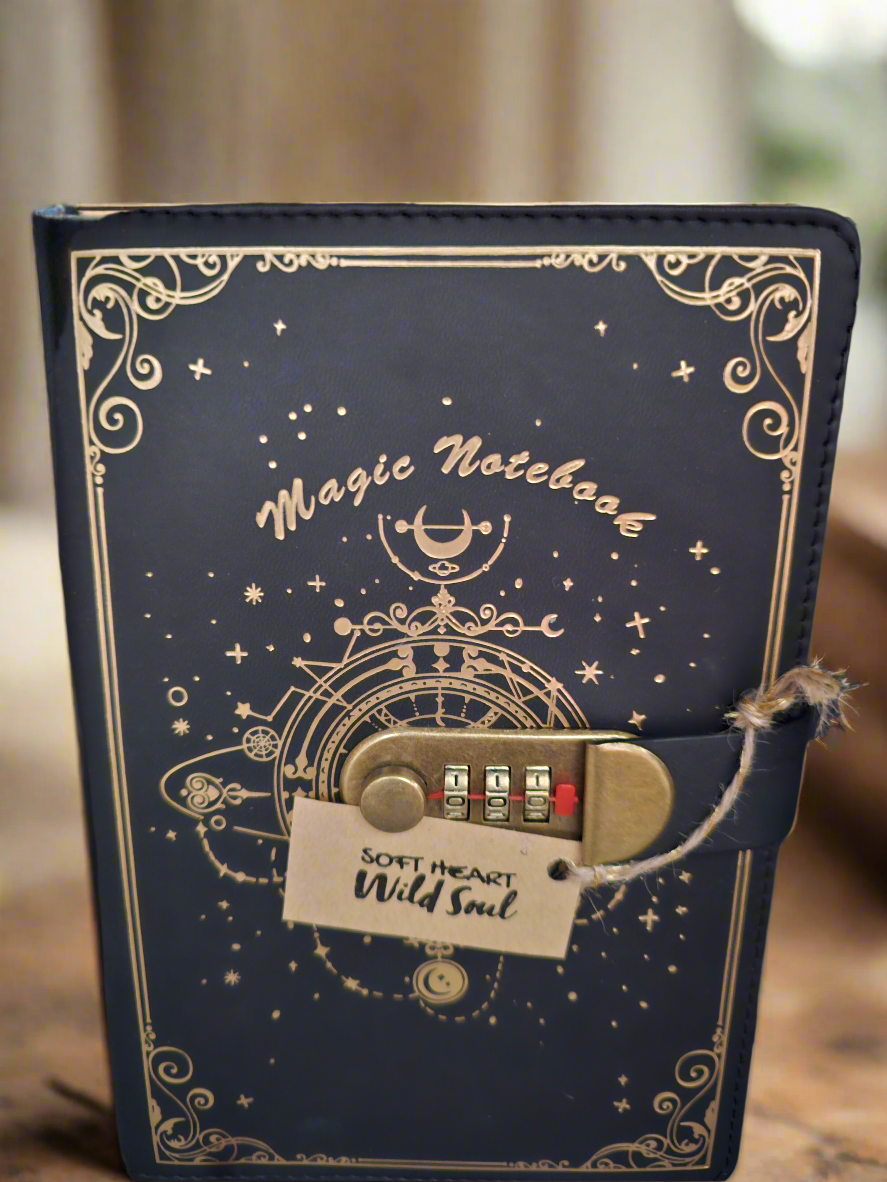 This lockable notebook is perfect for those who want to keep their writing safe and secure. With a lock and key, your thoughts, dreams, and secrets will be protected in style. Embrace the magical and mysterious with this elegant notebook.