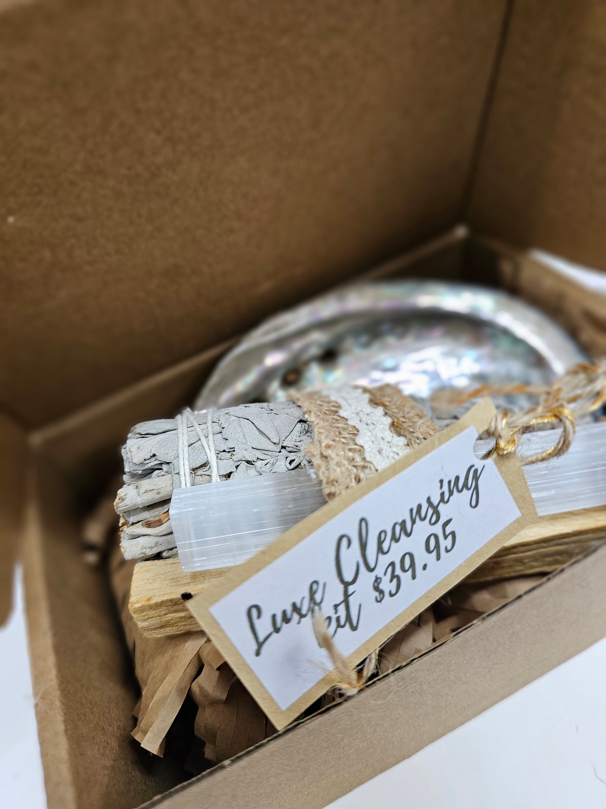 Keep your aura in check with the LUXE cleansing kit. Includes Palo Santo, selenite, sage and an abalone shell. Clear negative energy and invite positive vibes with this powerful combination. Perfect for those seeking balance and a little spiritual TLC.